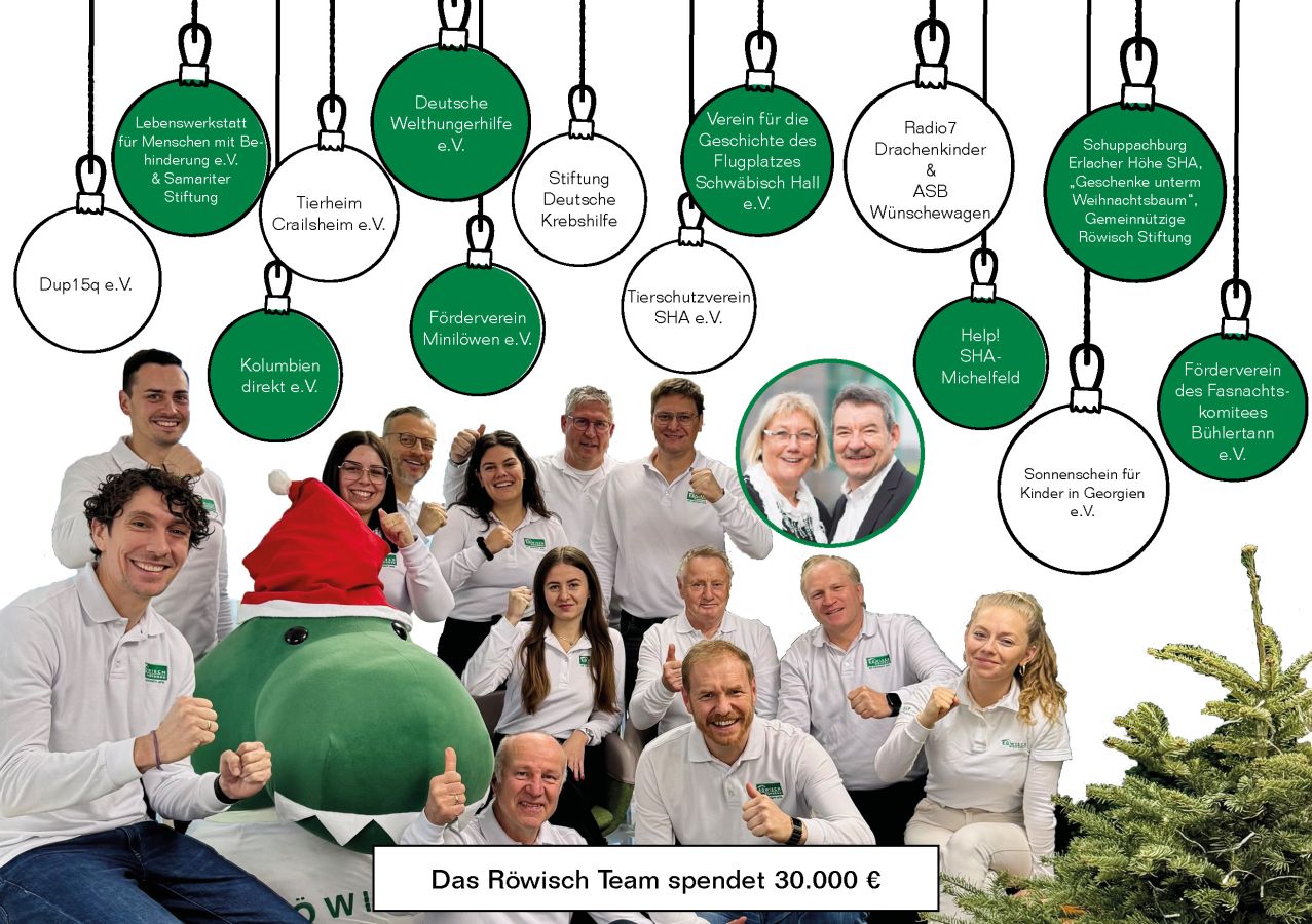 Auch dieses Jahr durfte jeder Mitarbeiter wieder ein Spendenbudget von je 1.000 € vergeben. Röwisch rundete großzügig auf. Insgesamt kam eine Summe von 30.000 € zusammen, die an viele unterschiedliche, gemeinnützige Vereine gespendet wurde.